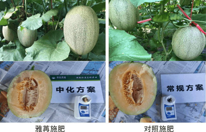 两者之间有明显的差异。雅苒施肥果实个头大,而且饱满,但甜度两者就差异不明显。但是由于哈密瓜茎基腐病发病较多,严重影响的哈密瓜的产量。